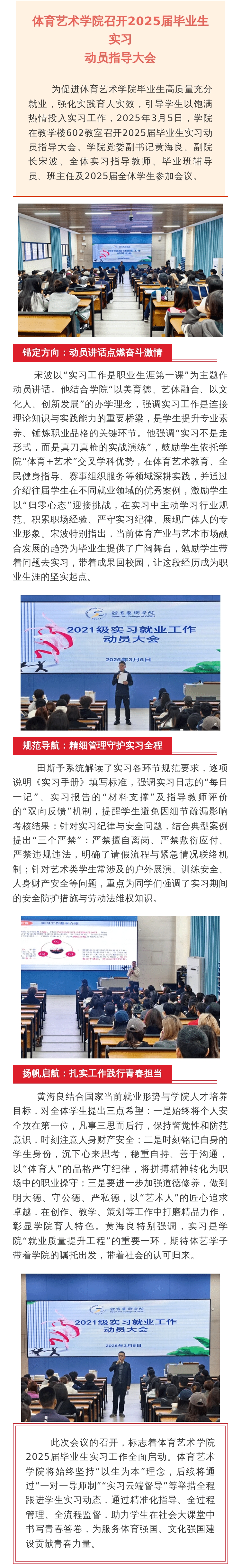 本周,体育艺术学院教学工作有序开展,全体师生以饱满的热情投入到日常教学活动中。教学秩序保持稳定,各项教学任务顺利推进,在教学过程中也涌现出诸多亮点与优秀案例。为进一步提升教学质量,现将本周教学工作情况进行梳理总结,以便师生更好地了解教学动态,为后续教学工作提供参考与指引。