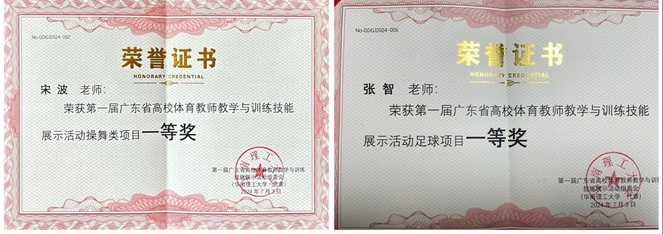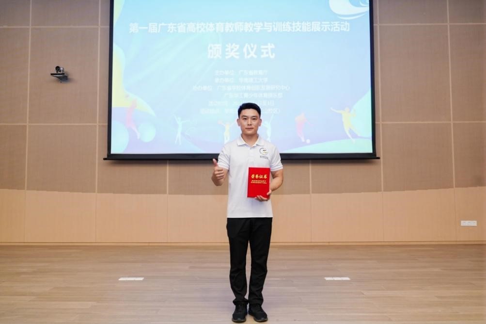 7月1日至3日,第一届广东省高校体育教师教学与训练技能展示活动在华南理工大学举行,我校选派的两位教师双双获得一等奖。