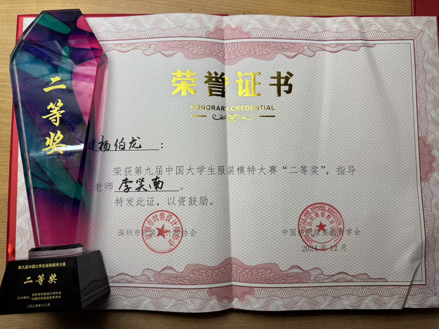 近日,由中国纺织服装教育学会、深圳市时装设计师协会联合主办的第九届中国大学生服装模特大赛在深圳落下帷幕,来自全国69所院校服装表演专业的百余名选手在舞台上用青春与时尚演绎出一场视觉盛宴。大赛经过平面拍摄技巧测试、专业素质测试以及泳装、礼服、休闲服等环节的激烈角逐,最终由体育艺术学院时尚表演教研室主任李笑南老师指导的2022级时尚表演专业杨伯龙在总决赛中脱颖而出,荣获总决赛二等奖!