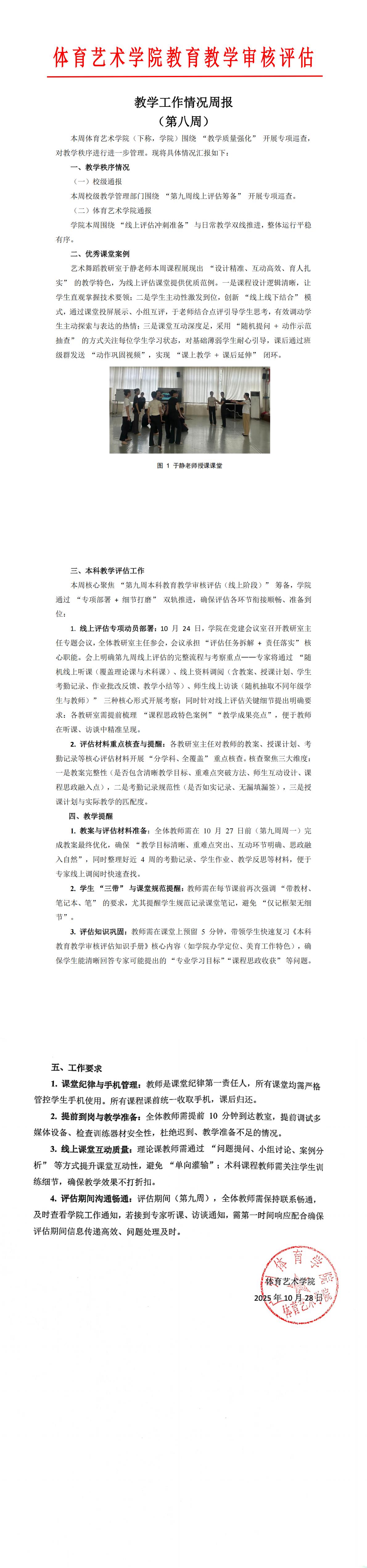 体育艺术学院2025-2026第一学期第八周教学情况周报