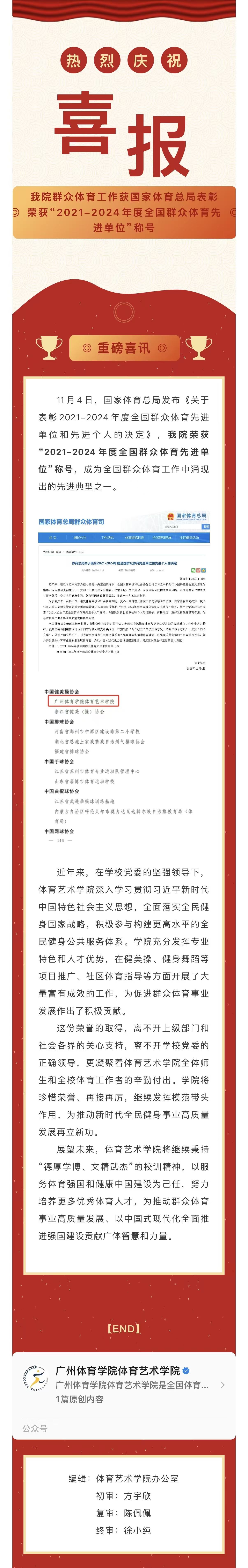 喜报|我院群众体育工作获国家体育总局表彰