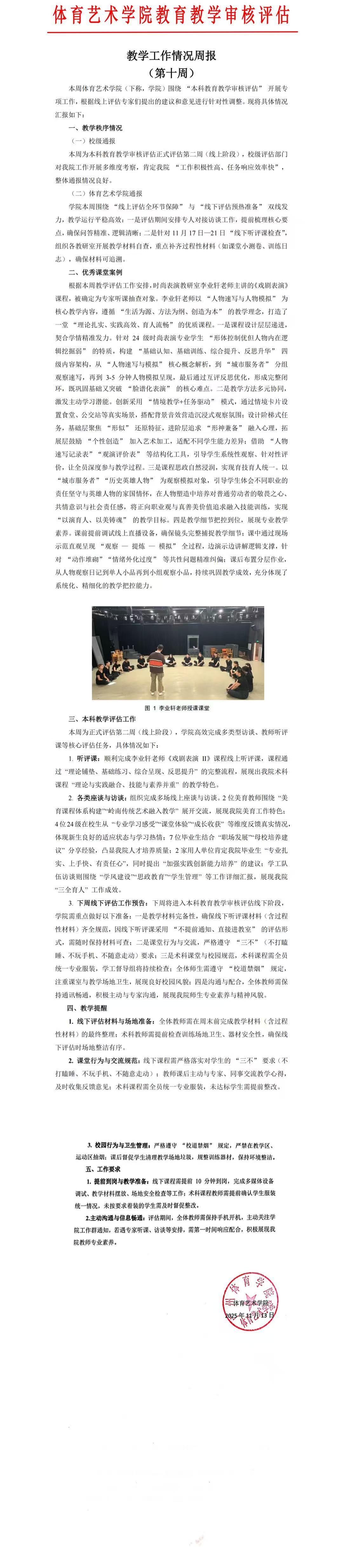 体育艺术学院2025-2026第一学期第十周教学情况周报