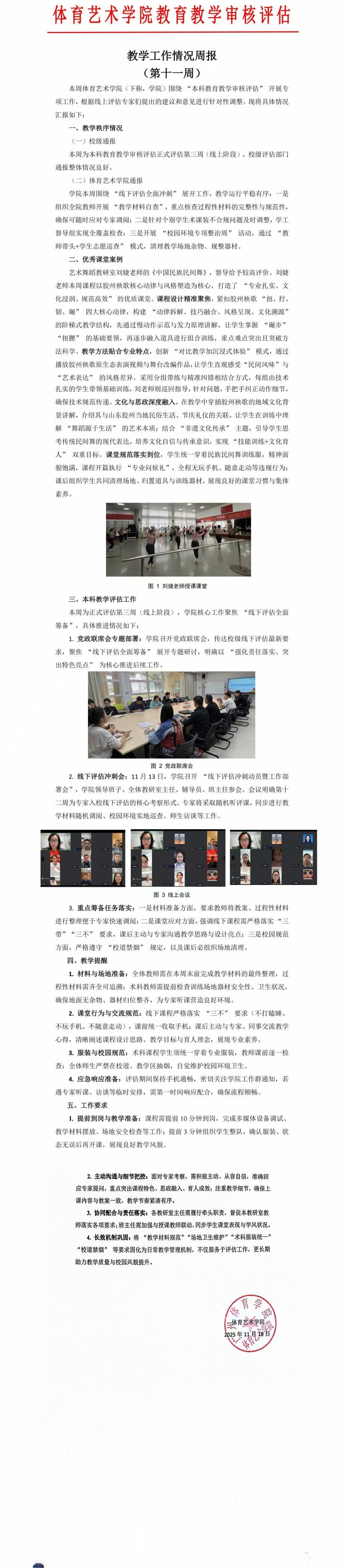 体育艺术学院2025-2026第一学期第十一周教学情况周报