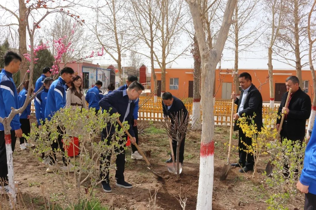 期间,米银俊和疏附县教育局党组书记付国庆、我校援疆支教大学生在校园内开展象征民族团结一家亲的义务植树活动,共同种下一棵生机勃勃的“民族友谊之树”,一片凝结携手同心、团结共进的民族情谊和发展理念的“民族团结林”呈现在眼前。