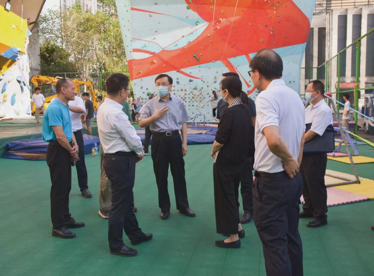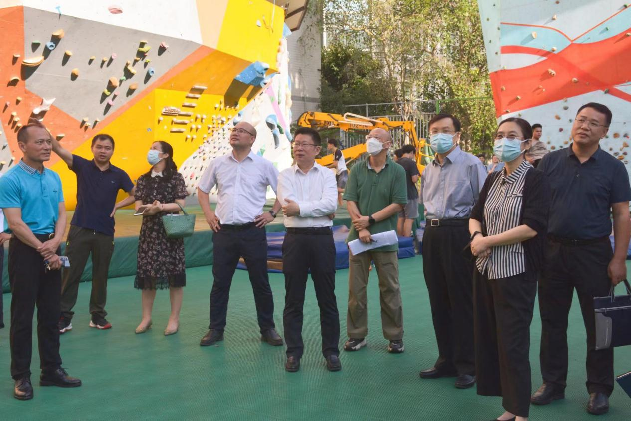 座谈会结束后,张科一行实地考察了广东省少数民族体育协会以及我校攀岩训练场地情况。