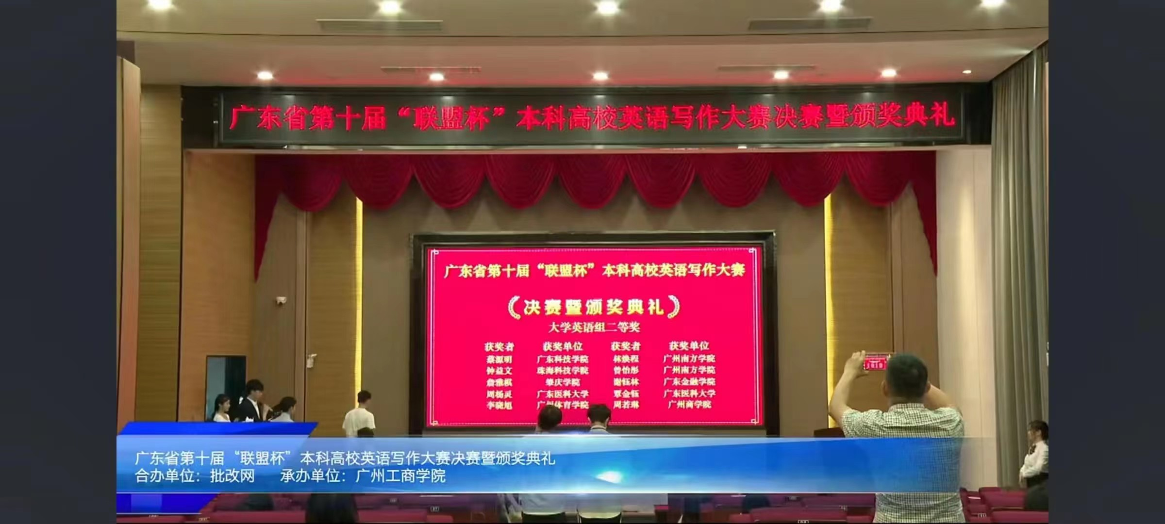 本次大赛由广东省本科高校大学英语课程教学指导委员会、广东省本科高校外语类专业教学指导委员会英语专业分委员会、中国高校英语写作教学联盟联合主办,广州工商学院承办,批改网作为合办单位全程提供技术支持。此次比赛旨在推动广东省本科院校英语教学改革和创新,提高学生英语写作能力和水平。比赛分为初赛、复赛、决赛三个阶段,共有来自全省59所高校272名选手参加。