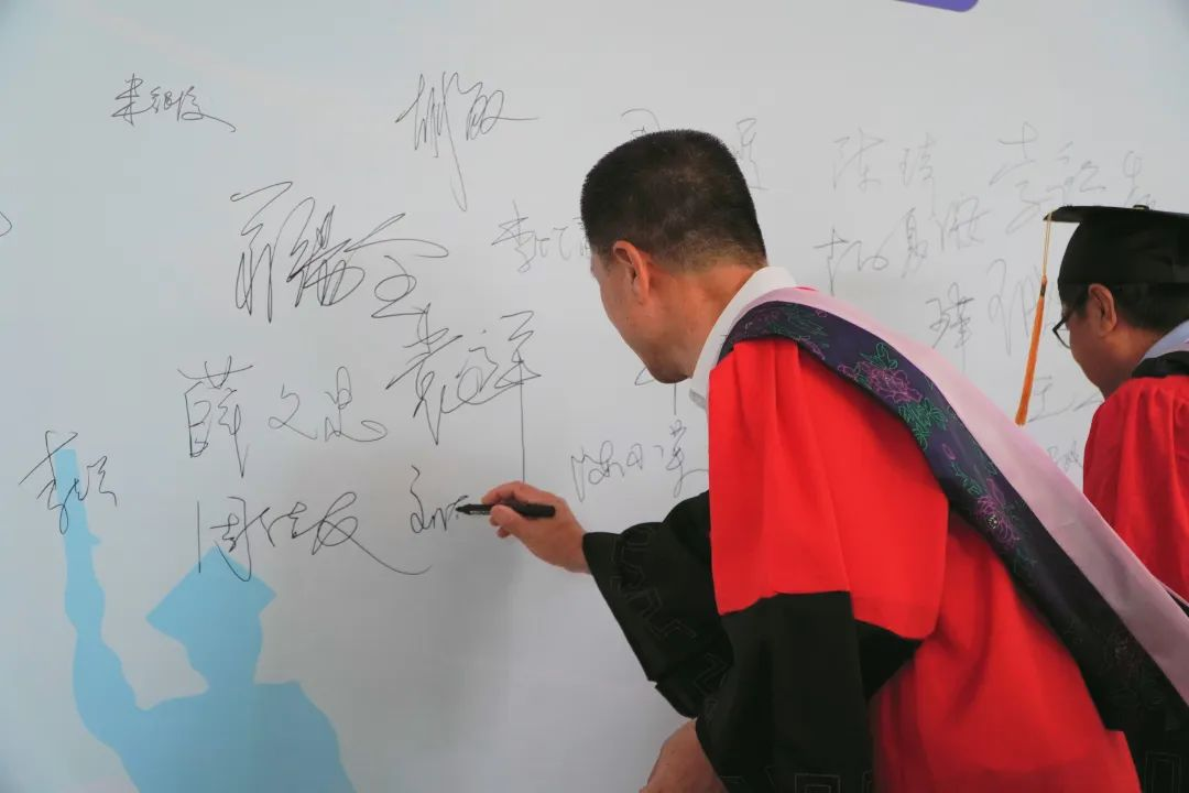 校领导、导师和毕业研究生纷纷在签名墙上留下自己的名字。校领导、导师们还留下了对学生诚挚的祝福和殷切的期望。大家用真挚的话语记录自己的心声,有对未来的憧憬,有对恩师的感激,有对师弟师妹的寄语,也有对母校的祝福,承载的是对母校和在校青春岁月的珍惜和不舍。千言万语,这不仅是毕业研究生在校的美好回忆,更是踏向新征程的新起点。