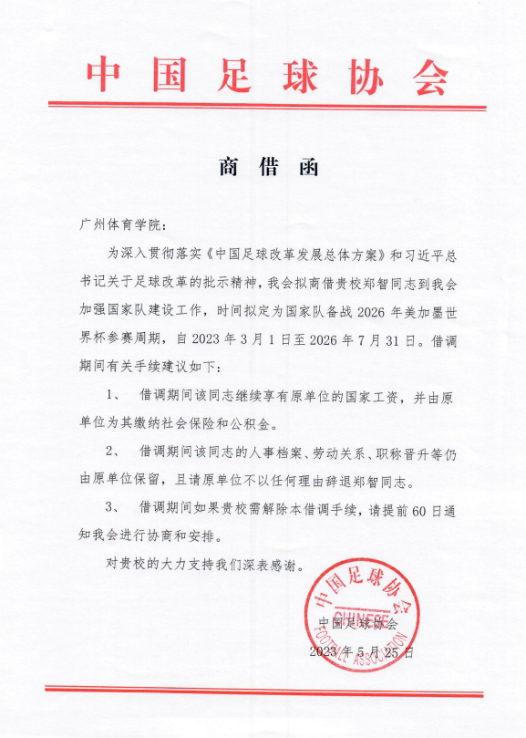 我校足球学院足球训练教研室教师郑智副教授被国家队借调执教,备战2026年美加墨世界杯