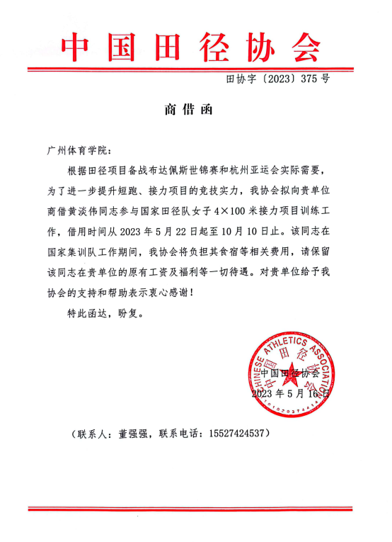 我校体育教育学院田径教研室教师黄淡伟被国家队借调执教,备战2023年亚运会