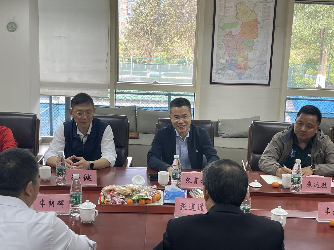 随后,张育方副校长一行来到黄埔区少年业余体校(广州国际开发区网球学校)开展“访企拓岗”工作。在广体校友、广州市黄埔区体育局副局长张道通、网球学校李朝辉校长的陪同下,张副校长一行参观了学校的场地设施、党建阵地等,通过座谈了解网球学校的人才培养、竞赛成绩等。随后,双方就体教融合、新型体育人才培养、项目共建、人才输送、实习就业等合作方面进行深入探讨,取得了丰富成果。
