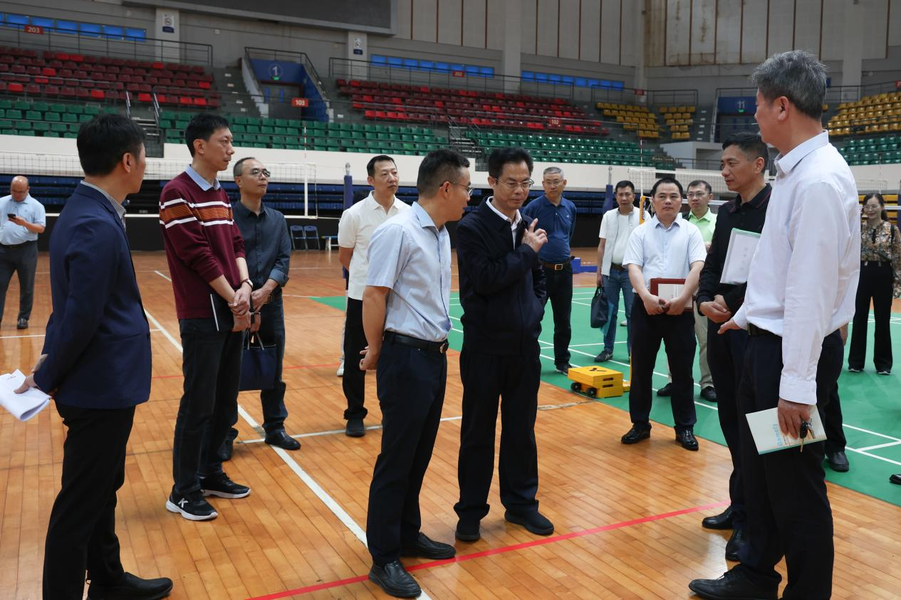 调研组抵达好博体育亚运篮球馆等场地,实地考察调研场馆总体结构、空间布局、专用设施、功能用房等基础设施的实际情况,确保“十五运会”的顺利进行。