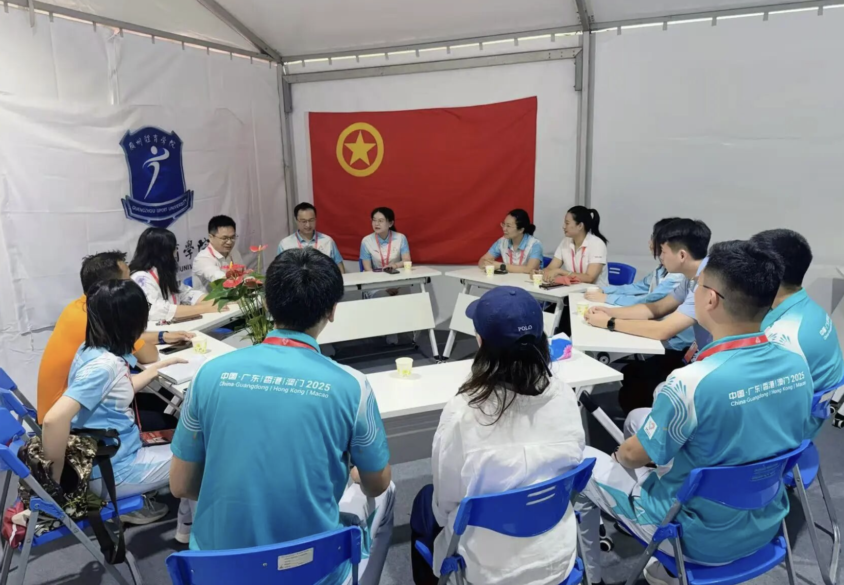 2025年8月8日下午,省执委会大型活动和志愿服务部保障处处长张献伟带领调研团队一行赴广州赛区调研十五运会群众比赛乒乓球项目赛会志愿服务工作。调研团队专程走访天河体育中心体育馆志愿者服务岗位,在志愿者之家召开座谈交流会,将这份沉甸甸的关怀与期许,化作暖流淌进每一位志愿者的心田。