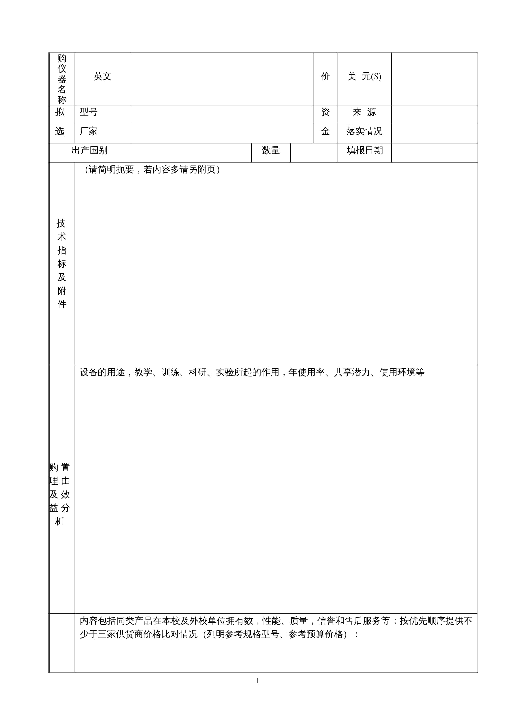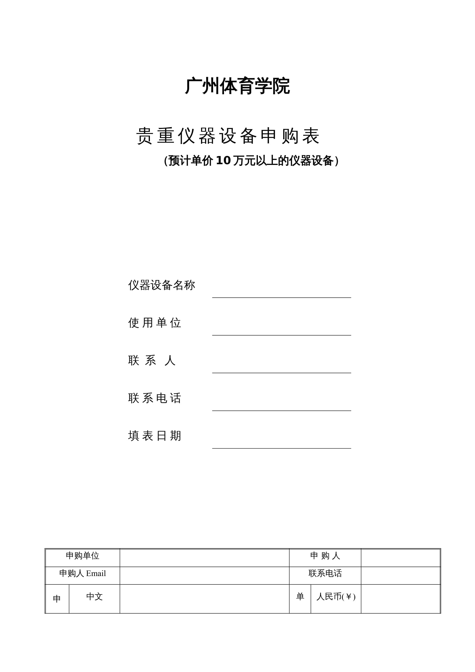 贵重仪器设备申购表(10万元以上)
