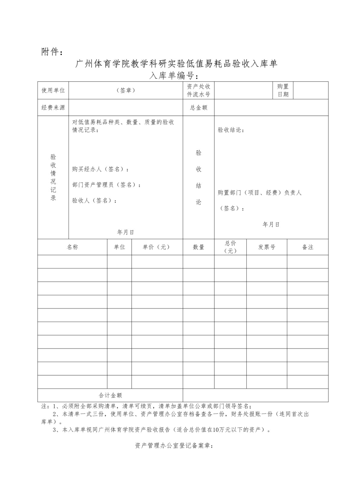 附件1:好博体育教学科研实验低值易耗品验收入库单.doc