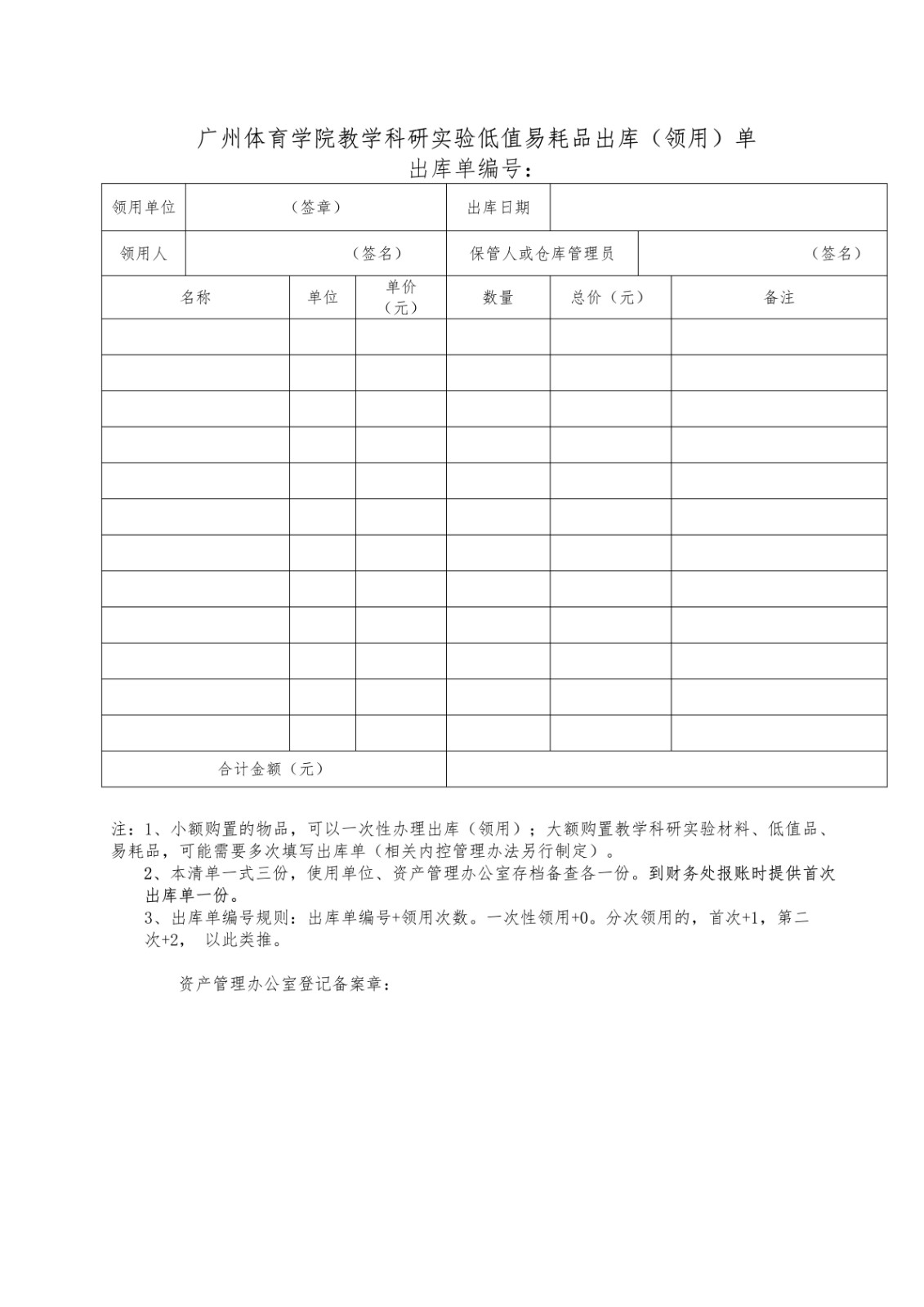 附件2:好博体育教学科研实验低值易耗品出库(领用)单.doc